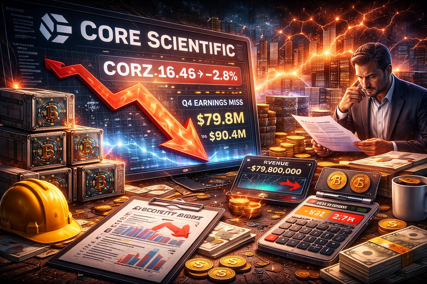 Receita da Core Scientific fica abaixo das projeções em meio à queda do Bitcoin e transição para infraestrutura de IA
