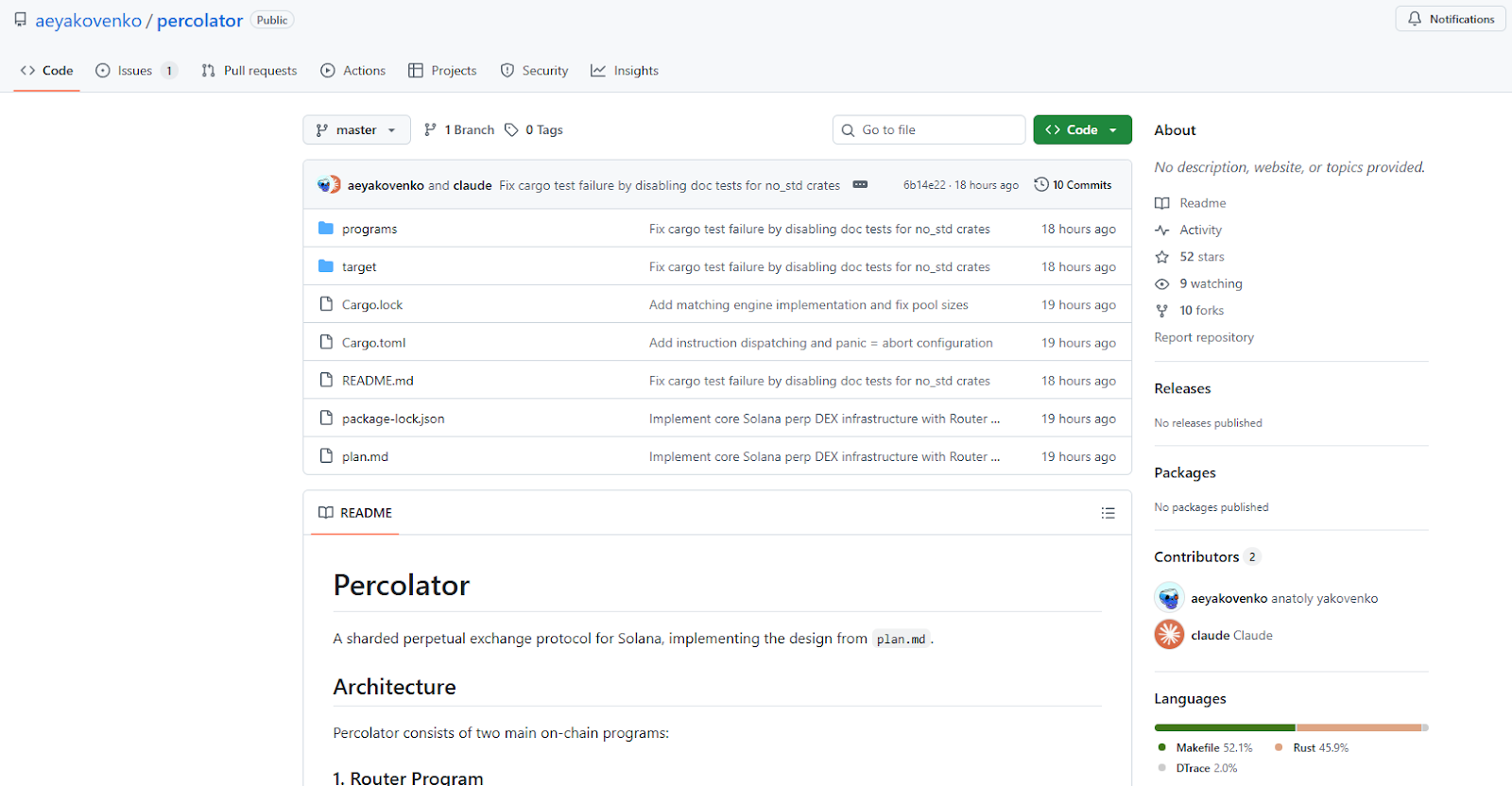 A Percolator será construída sobre a blockchain Solana e contará com dois programas principais on-chain: