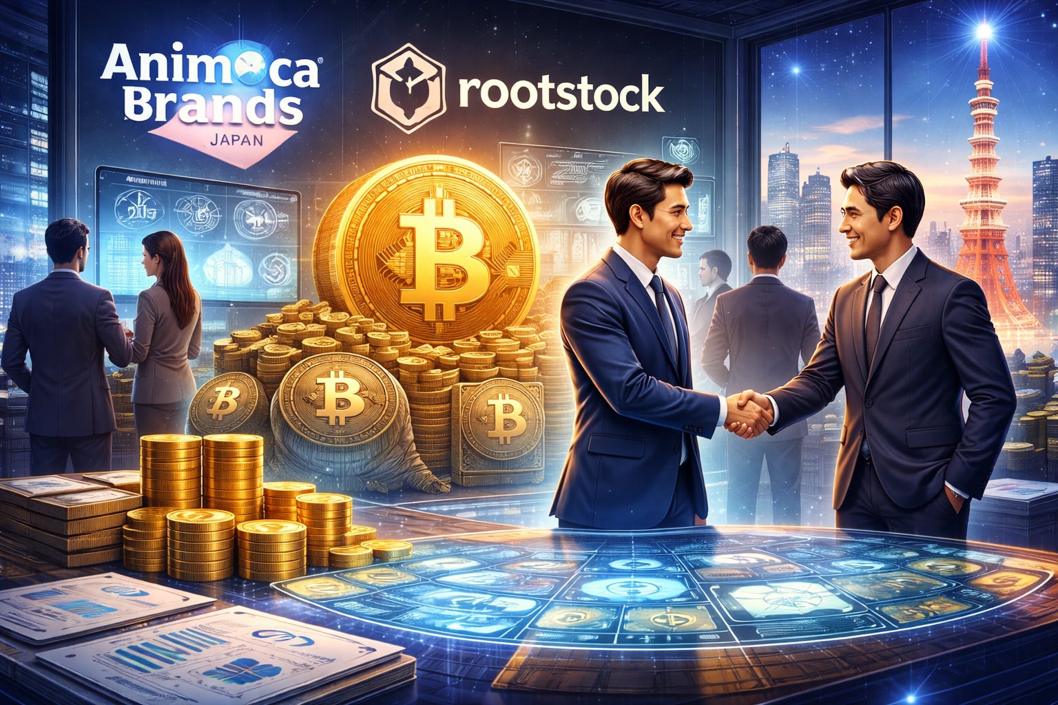 Fonte: Cointelegraph; comunicados oficiais da Animoca Brands Japan e RootstockLabs.