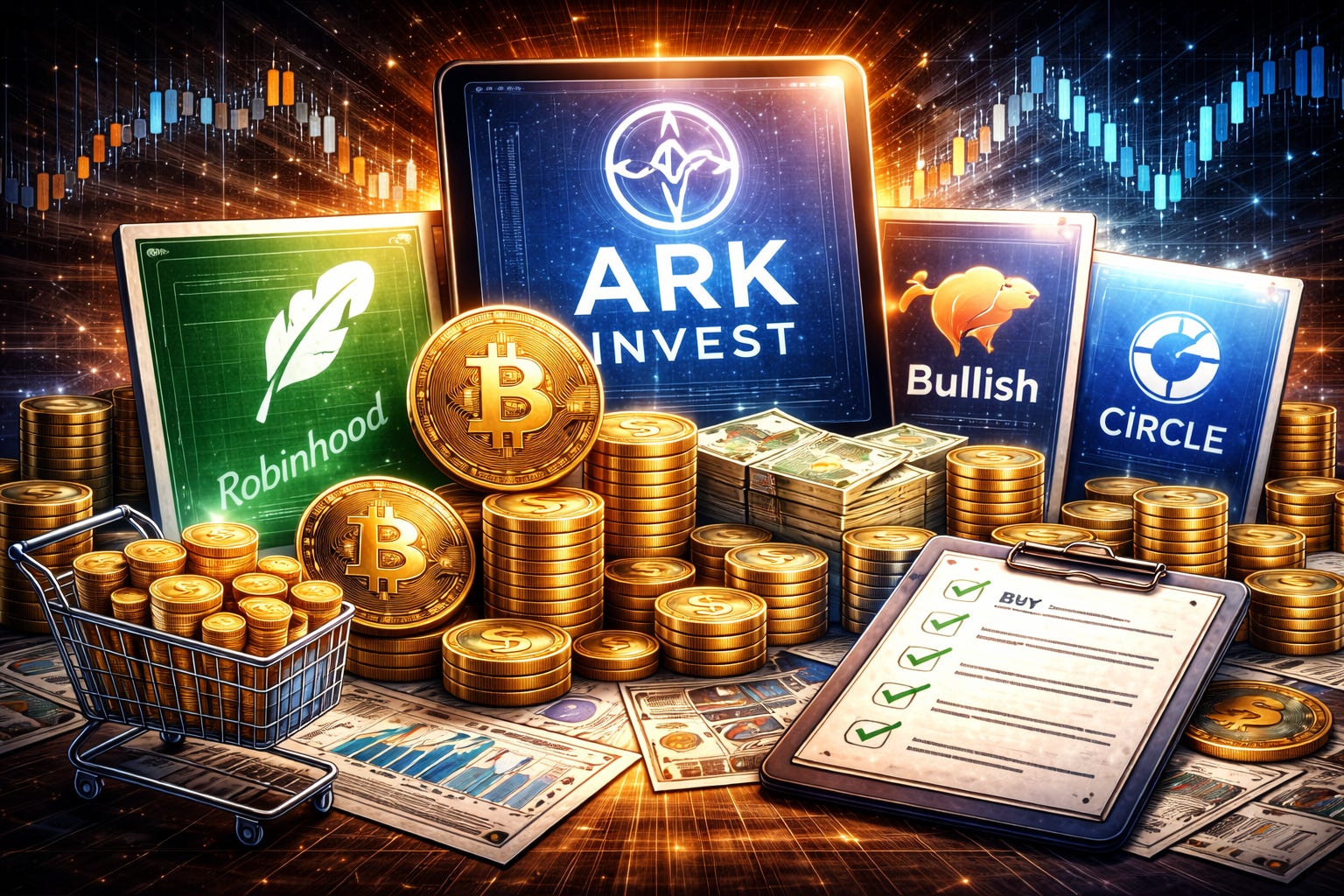 Segundo comunicado de transações revisado pelo mercado, a ARK comprou 433.806 ações da Robinhood (HOOD), avaliadas em cerca de US$ 33,8 milhões. A gestora também aumentou sua participação na exchange Bullish (BLSH), com aquisição de 364.134 ações (US$ 11,6 milhões), e na emissora da stablecoin USDC, Circle (CRCL), com compra de 75.559 ações (US$ 4,4 milhões).