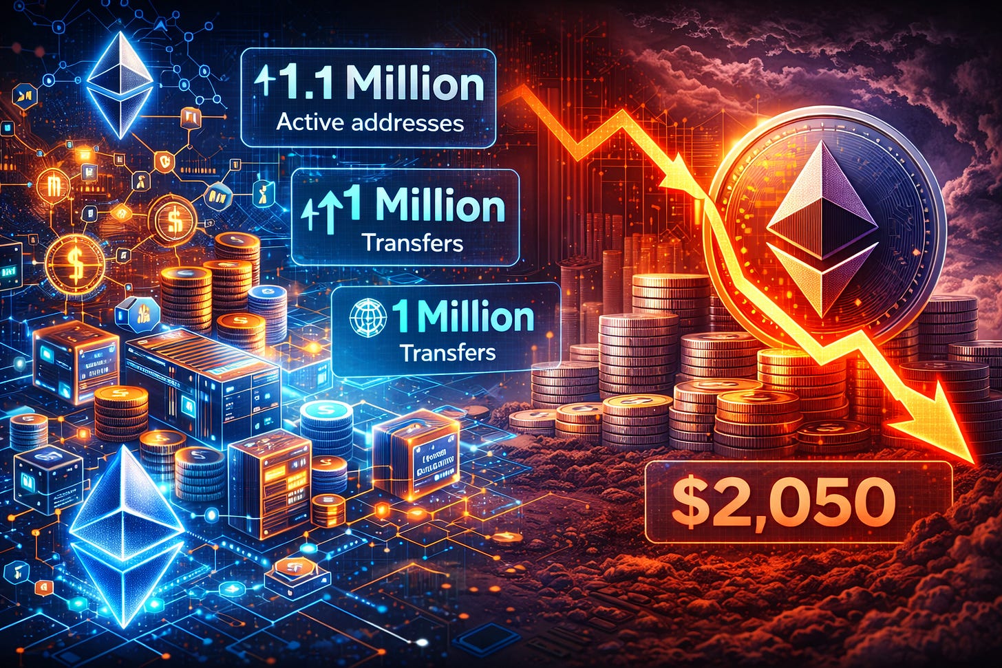 Atividade da rede Ethereum bate recordes enquanto preço do ETH segue em queda