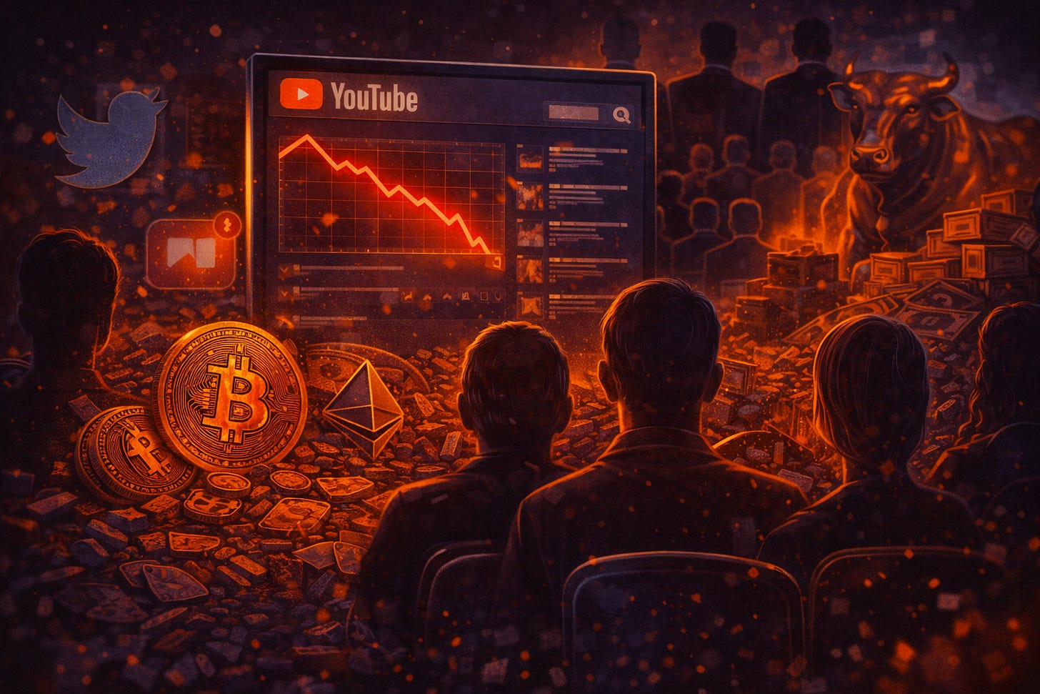 Audiência de conteúdo cripto no YouTube cai ao menor nível desde 2021 e expõe esgotamento do varejo