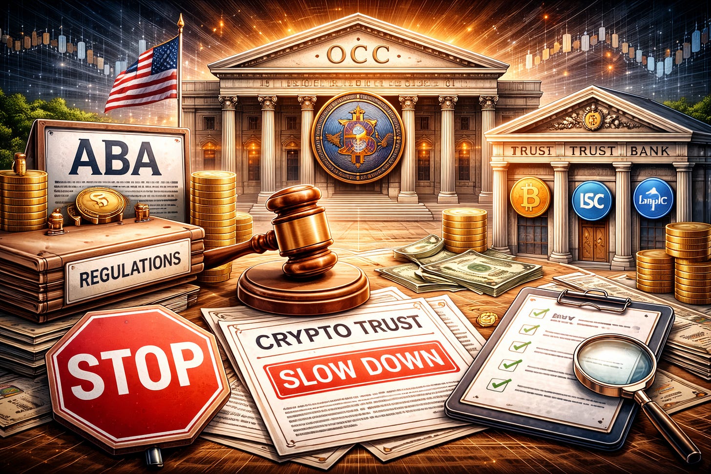 A American Bankers Association (ABA) solicitou que o Office of the Comptroller of the Currency (OCC) desacelere a aprovação de cartas nacionais para bancos trust focados em cripto e stablecoins até que o ambiente regulatório sob o GENIUS Act esteja totalmente definido.