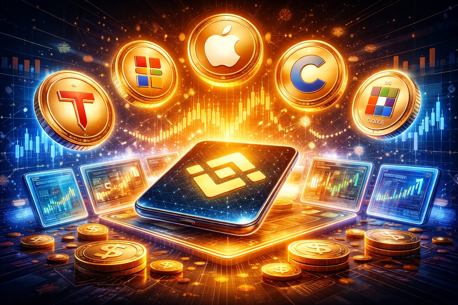 A Binance lançou seus primeiros tokens de ações em abril de 2021, começando por papéis da Tesla e, posteriormente, incluindo empresas como Coinbase, MicroStrategy, Apple e Microsoft. No entanto, a oferta passou a enfrentar forte escrutínio regulatório, especialmente na Europa.