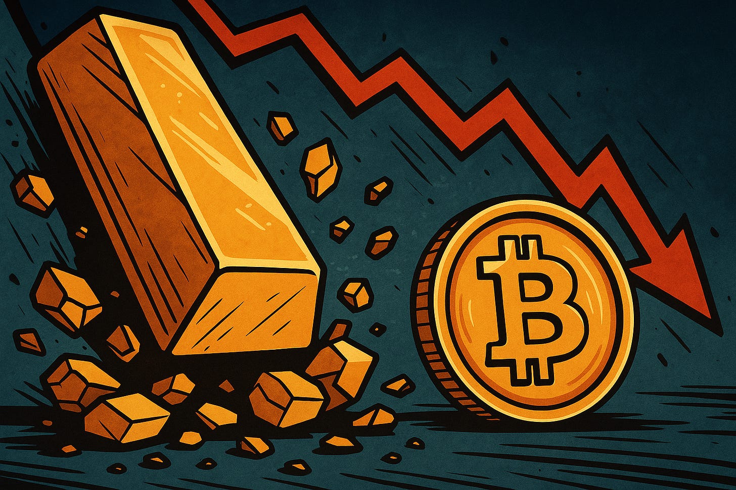 Em apenas oito horas, ouro perdeu valor equivalente a toda a capitalização de mercado do Bitcoin — investidores estão rotacionando para cripto