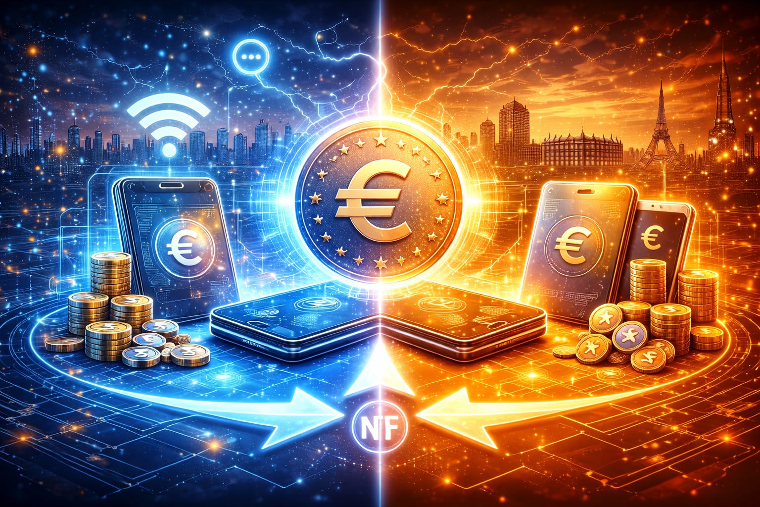 As transações offline ocorreriam por meio de dispositivos autorizados, como smartphones ou cartões inteligentes, que armazenariam tokens de euro digital assinados pelo banco central. Os pagamentos seriam realizados via NFC (near-field communication), exigindo proximidade física entre os dispositivos.