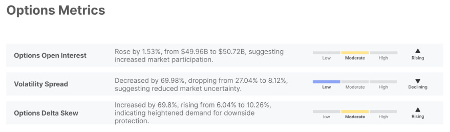 Mudanças nas métricas semanais de opções de Bitcoin. Fonte: Glasnode