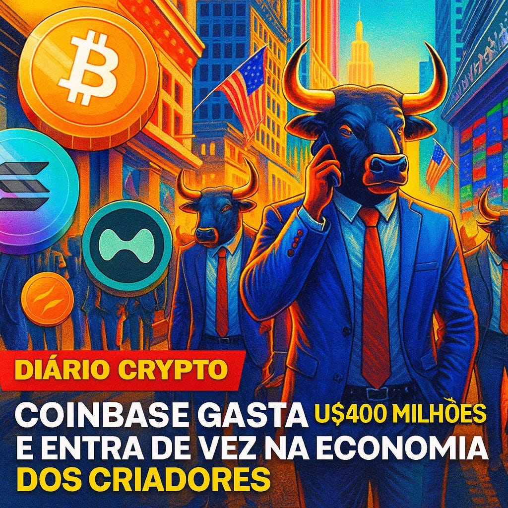 O movimento mais impactante do dia vem da Coinbase. A exchange anunciou a compra de US$ 400 milhões em ativos focados na economia dos criadores, marcando uma das maiores aquisições estratégicas da história do setor.