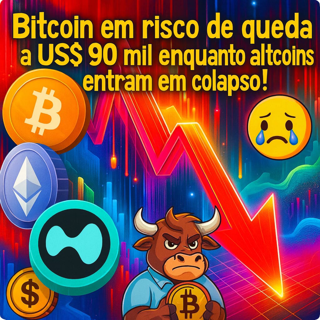 Bitcoin em risco de queda a US$ 90 mil enquanto altcoins entram em colapso
