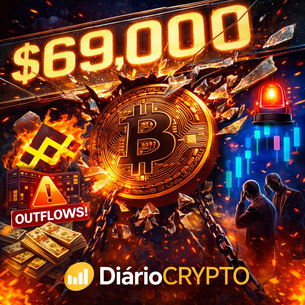 O Bitcoin pressiona a região do antigo topo histórico, situada entre 69 mil e 71 mil dólares. Trata-se de uma área que, historicamente, concentra decisões relevantes de mercado. Quando o preço se aproxima desses níveis, o fluxo de notícias negativas costuma se intensificar, criando um ambiente propício ao medo e à tomada de decisões precipitadas.