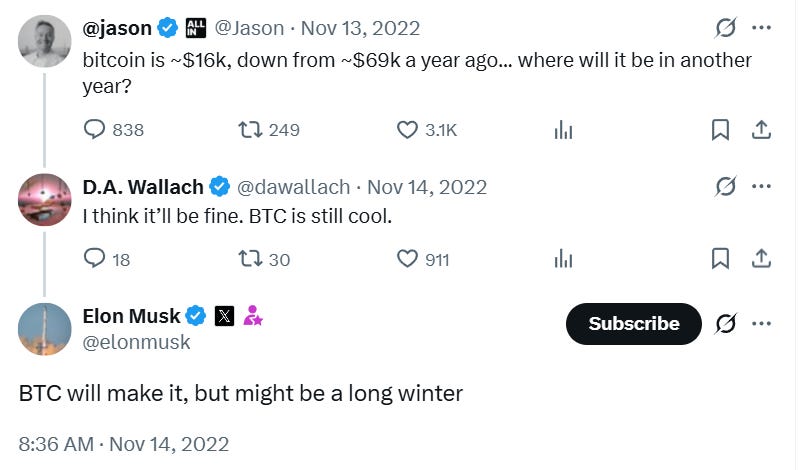 🥶 Musk e a previsão do “inverno cripto” pós-FTX