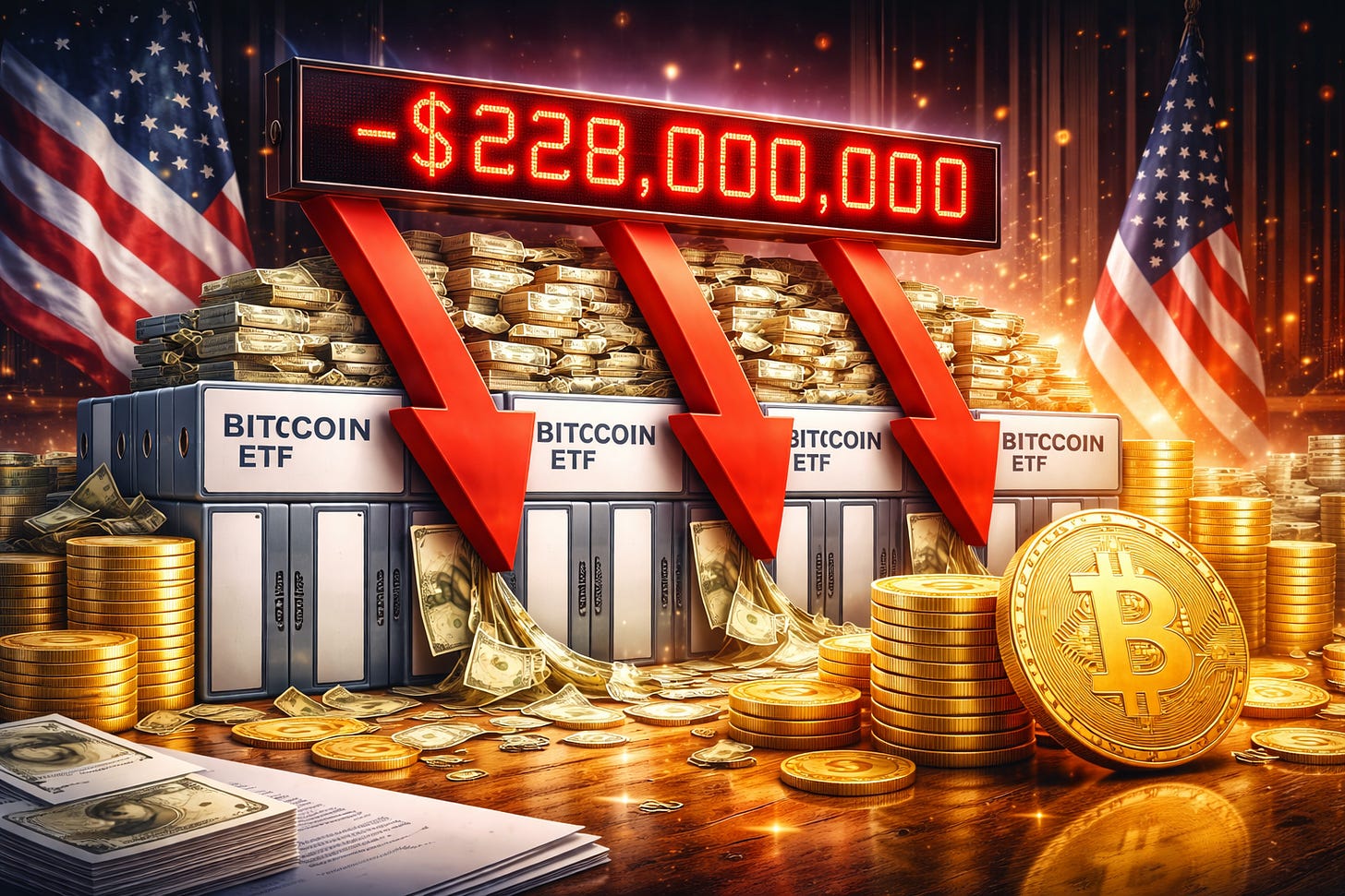 ETFs de Bitcoin nos EUA registram saídas de US$ 228 milhões após queda do BTC