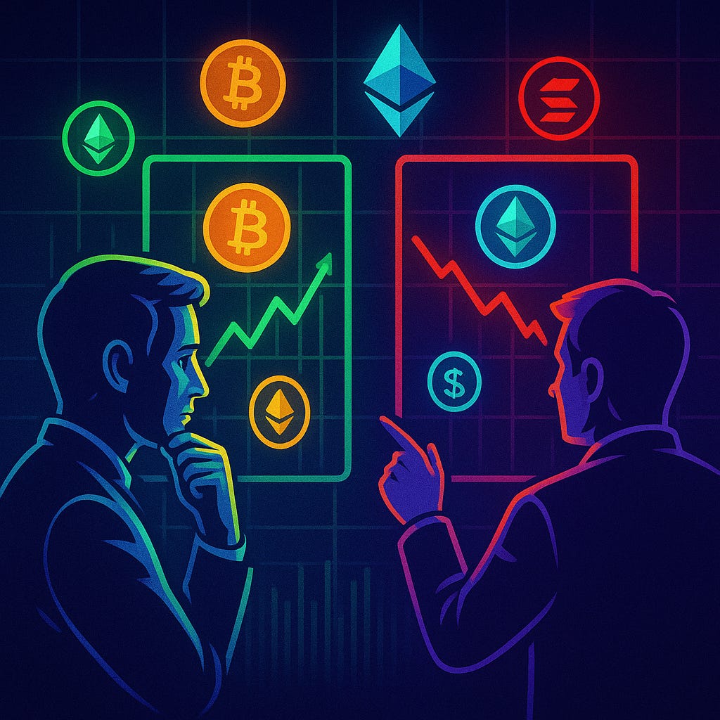 Enquanto o Bitcoin sente a pressão da política monetária, investidores institucionais direcionam bilhões para Ethereum e Solana, reacendendo a disputa dentro do setor cripto.