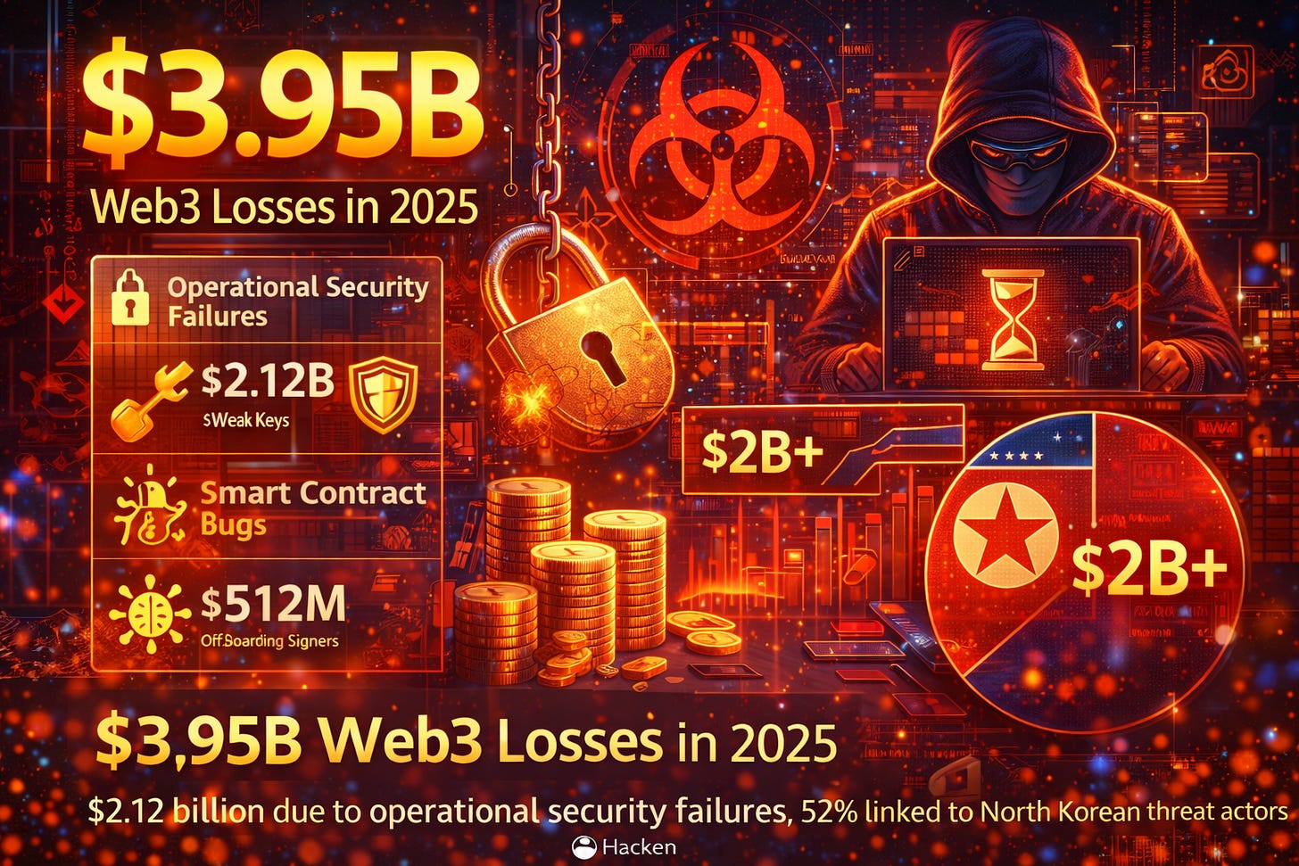 O ecossistema Web3 encerrou 2025 com um alerta vermelho em segurança. Segundo o Relatório Anual de Segurança 2025 da Hacken, as perdas totais no setor chegaram a US$ 3,95 bilhões, um aumento de aproximadamente US$ 1,1 bilhão em relação a 2024. O dado mais preocupante, no entanto, não está apenas no volume, mas na origem: mais da metade dos prejuízos foi causada por falhas operacionais, e não por bugs sofisticados em contratos inteligentes.