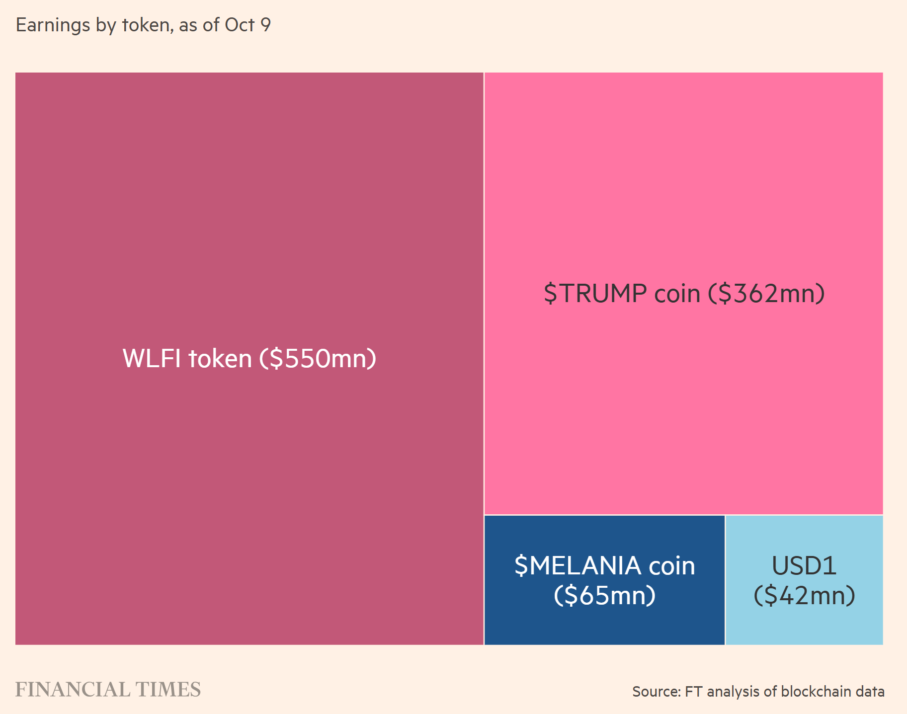Em junho, Trump declarou US$ 57,4 milhões em rendimentos relacionados à WLFI. No mês seguinte, a participação da família no projeto saltou para US$ 5 bilhões após um desbloqueio de tokens. Estimativas indicam que US$ 550 milhões em lucros foram obtidos somente neste ano com a WLFI.