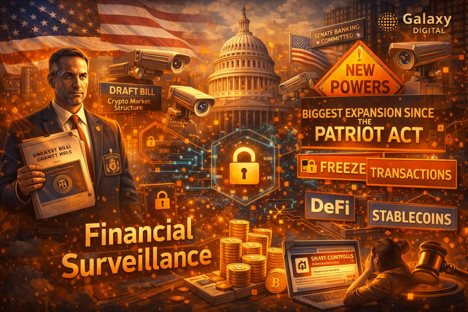 Galaxy Digital alerta para “maior expansão de vigilância financeira desde o Patriot Act” em novo projeto cripto do Senado dos EUA