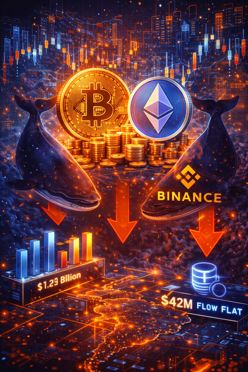 Entradas bilionárias de Bitcoin e Ether na maior corretora do mundo sugerem possível pressão vendedora, enquanto acumulação de longo prazo perde força
