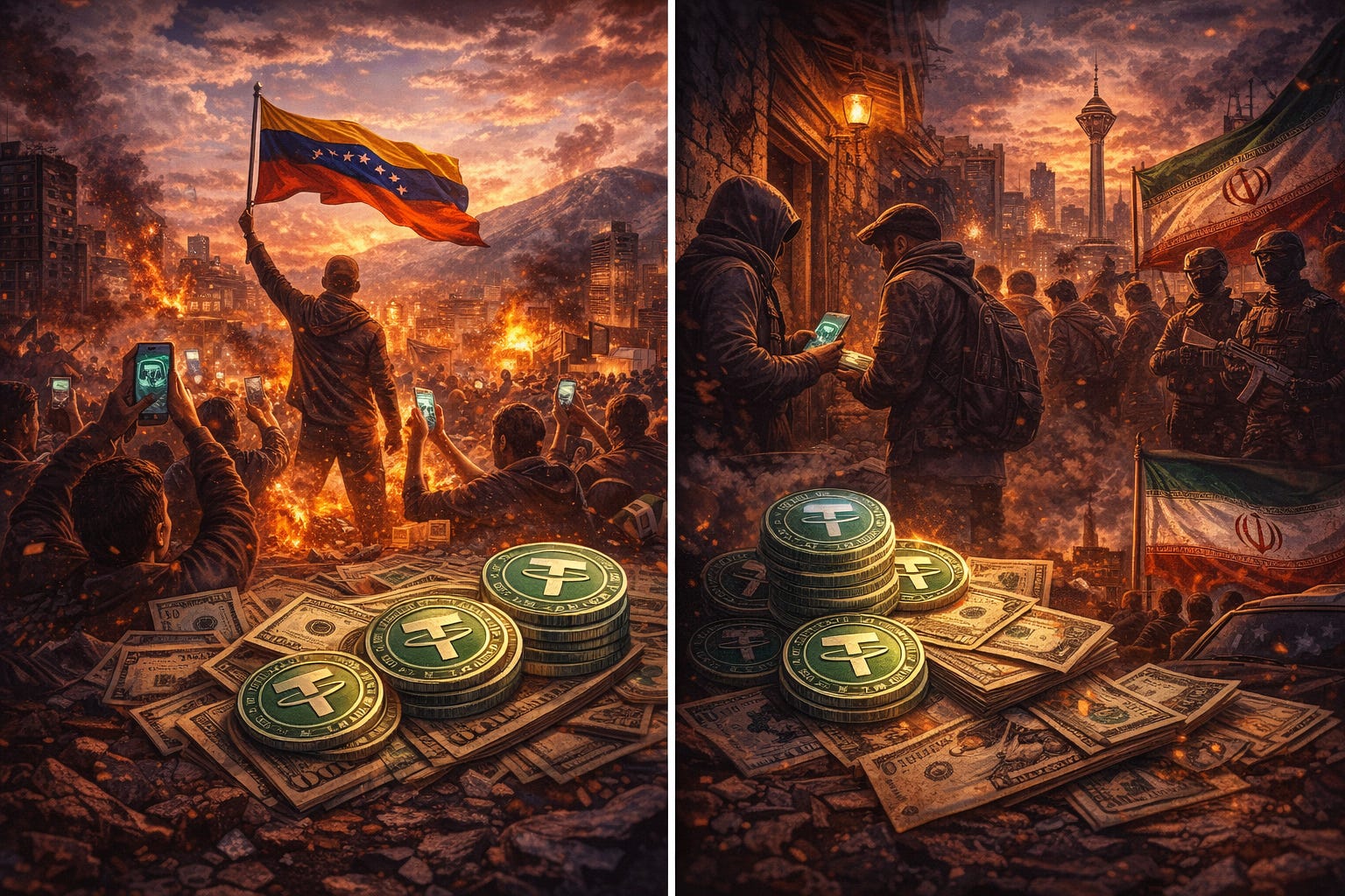 A escalada de tensões políticas e sociais na Venezuela e no Irã, no início de 2026, voltou a colocar os stablecoins lastreados em dólar, especialmente o USDT (Tether), no centro do debate global. Esses ativos digitais têm funcionado simultaneamente como instrumento de sobrevivência financeira para a população e como meio de evasão de sanções por entidades sob embargo internacional.