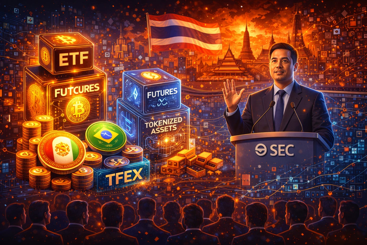 A Securities and Exchange Commission of Thailand anunciou que está finalizando um novo conjunto de regras para viabilizar ETFs de criptomoedas, negociação de futuros cripto e produtos de investimento tokenizados no país. A iniciativa faz parte da estratégia do governo para transformar a Tailândia em um hub regional de ativos digitais voltado a investidores institucionais.